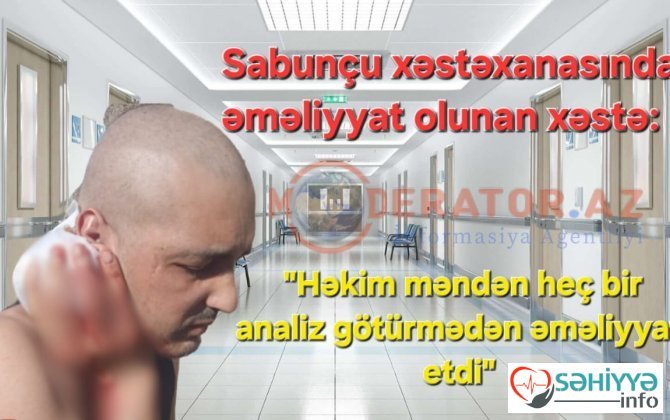 "Sabunçu" xəstəxanasında əməliyyat olunan xəstə: "Həkim məndən heç bir analiz götürmədən əməliyyat etdi"