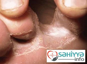 Onun sözlərinə görə, dərinin göbələklə zədələnməsi əsasən ayaqdan, xüsusilə barmaqlar arasından çat və dərinin soyulmasından başlayır: