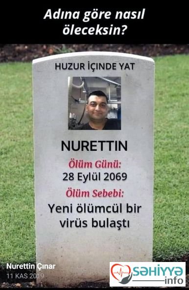 İki uşaq atası Nureddin keçən il “Facebook” sosial şəbəkəsində məşhur olan və çox insanın marağa qatıldığı “Adına görə necə öləcəksən” sorğusundan istifadə edərkən, “ yeni ölümcül virus” cavabını almış və bunu sosial media hesabında aşkar paylaşmışdı.