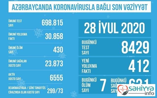 Sehiyye.info xəbər verir ki, məlumatda bu gün ərzində Azərbaycanda koronavirusla bağlı 8 429 test edildiyi bildirilib.